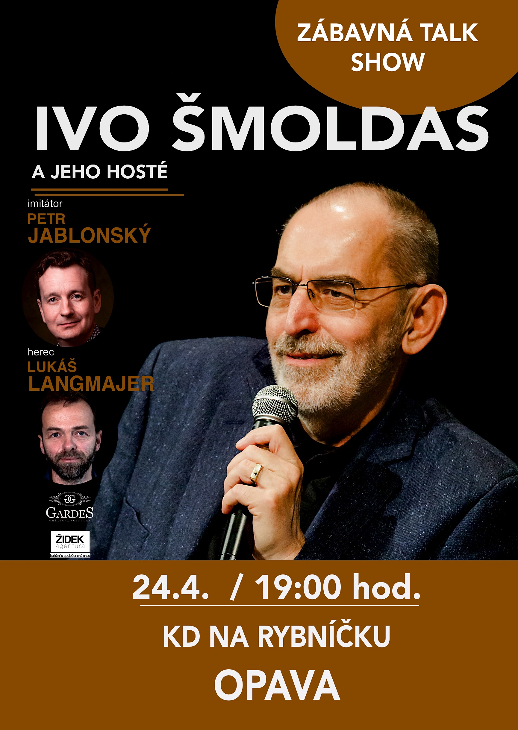 Neotřelý humor a originální vyprávění životních příběhů jak ze soukromého, tak pracovního života oblíbeného českého básníka, publicisty, redaktora, moderátora a herce Ivo Šmoldase a jeho hostů Petra Jablonského a Lukáše Langmajera. Přijďte si užít veselý večer ve skvělé společnosti 🥂