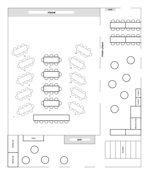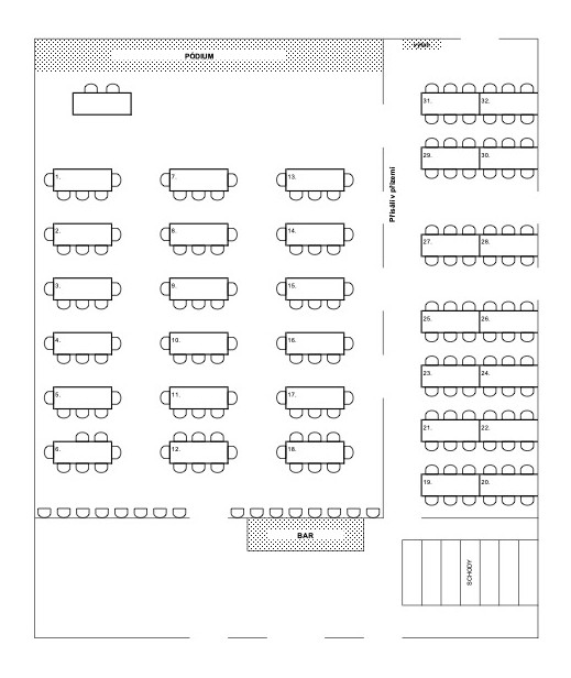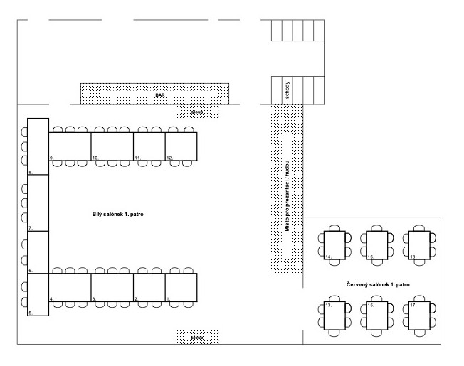 Kalkulaci zpracováváme individuálně na základě vašich konkrétních požadavků. Je možné pronajmout si jak jednotlivé sály, tak celý objekt a salónek v suterénu restaurace.